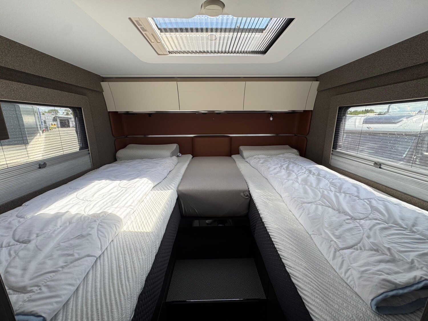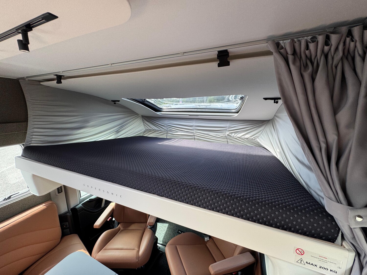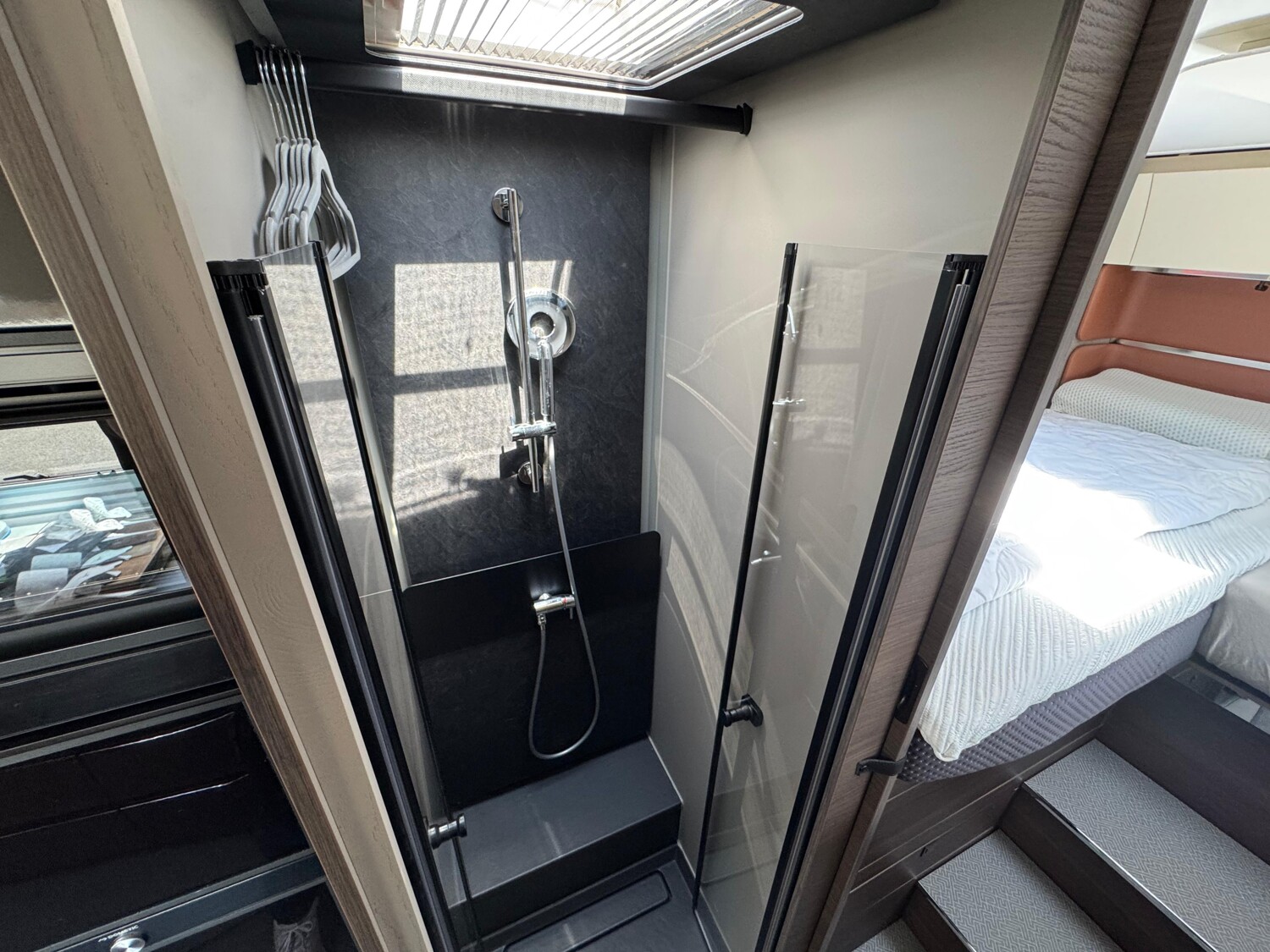Hubbett, TV-Anlage, separate Dusche / Toilette, Solaranlage, Dachklimaanlage, Autom. Hubstützenanlage, Navi, Rückfahrkamera, Elektr. Trittstufe, AHK